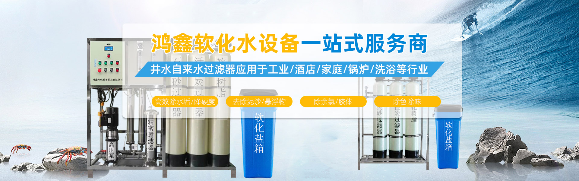 鴻鑫環保專業定制:市政生活用水處理設備、直飲純凈水設備超濾水處理設備、ro反滲透純水設備,離子交換純水設備、EDI超純水設備、軟化水處理設備、RO濃水回收設備、中水回用設備。